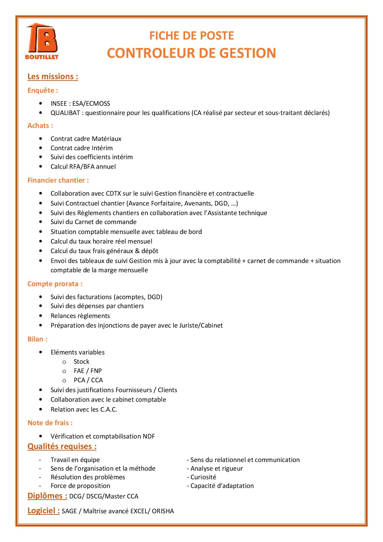BOUTILLET RECRUTE UN CONTROLEUR DE GESTION (H/F) – CHAUVIGNY (86)